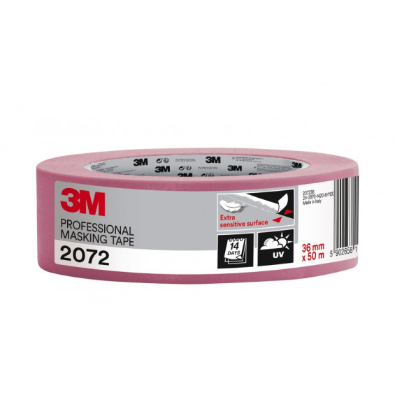 La cinta de enmascarar profesional 3M™ 2072 es la opción ideal para lograr líneas de pintura precisas en superficies delicadas, como papel pintado, barniz, acabados a espátula y decoraciones. Diseñada para ofrecer un rendimiento superior, esta cinta garantiza resultados limpios y profesionales en cada proyecto. Características: -Diseñada para superficies delicadas que requieren protección especial durante la pintura. -Permite líneas de pintura precisas y definidas, evitando filtraciones y manchas. -Fácil de aplicar y retirar, minimizando el riesgo de dañar las superficies. -Adhesivo de alta calidad que no deja residuos ni daña las superficies al retirar. -Ideal para trabajos de decoración, acabados finos y proyectos que requieren precisión.