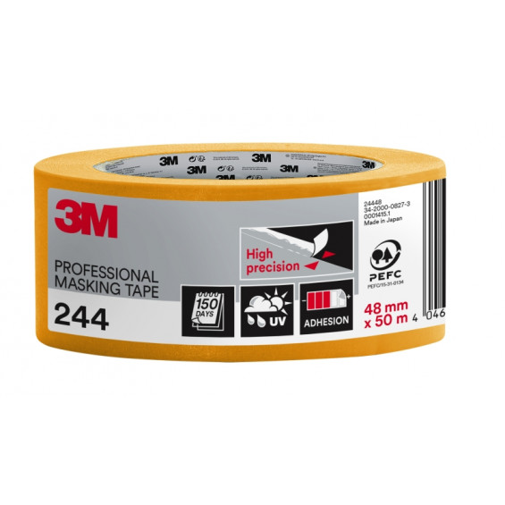 La cinta de enmascarar profesional 3M™ 244 es la solución ideal para obtener líneas de pintura perfectamente precisas en una variedad de superficies, tanto lisas como ligeramente texturizadas. Diseñada para profesionales y aficionados que buscan resultados de alta calidad, esta cinta garantiza un acabado limpio y definido en cada proyecto. Características: -Excelente adherencia en superficies como cristal, plástico, madera, metal, barnices y esmaltes. -Diseñada para aplicaciones de pintura que requieren líneas precisas y limpias. -Fácil de aplicar y retirar sin dejar residuos ni dañar la superficie. -Resistente a la humedad y a productos químicos, asegurando durabilidad durante el proceso de pintura. -Ideal para trabajos de enmascarado en proyectos de decoración, reparación y acabado profesional.
