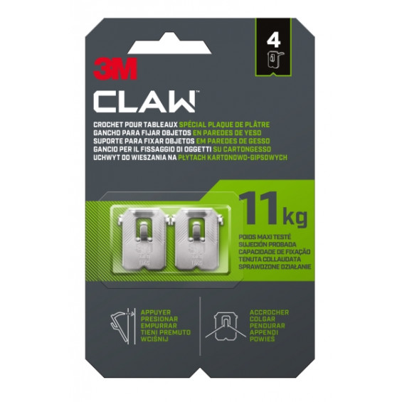 3M Claw Pack de 4 Ganchos de Metal para Paredes de Yeso - Soporta hasta 11kg - Color Gris/Titanio