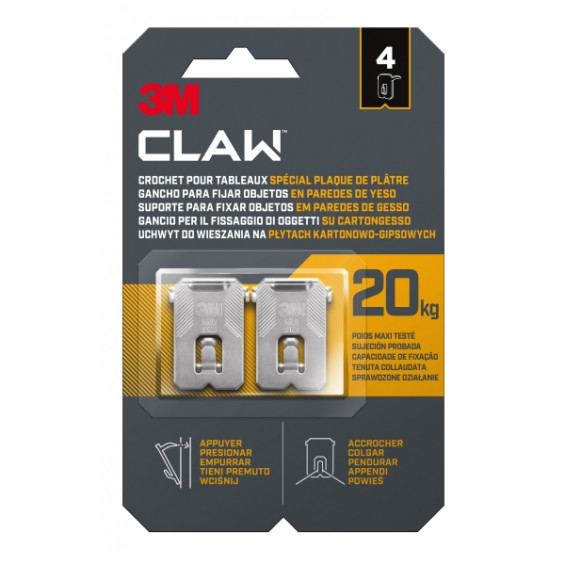 3M Claw Pack de 4 Ganchos de Metal para Paredes de Yeso - Soporta hasta 20kg - Color Gris/Titanio