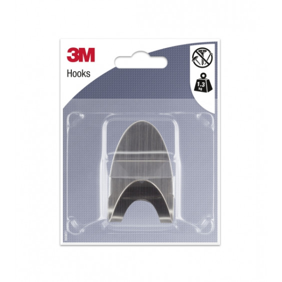 3M Gancho Adhesivo Metalico - Ovalado - Soporta hasta 1.3kg - Color Gris/Titanio