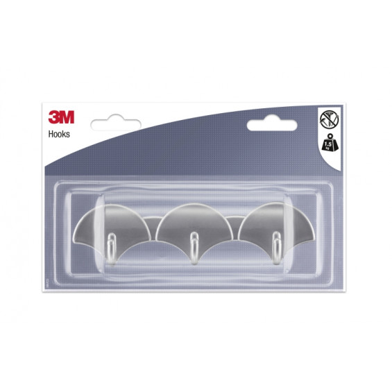 3M Ganchos Adhesivos en Barra - 3 Ganchos - Soporta hasta 1.5kg - Color Gris Metalizado