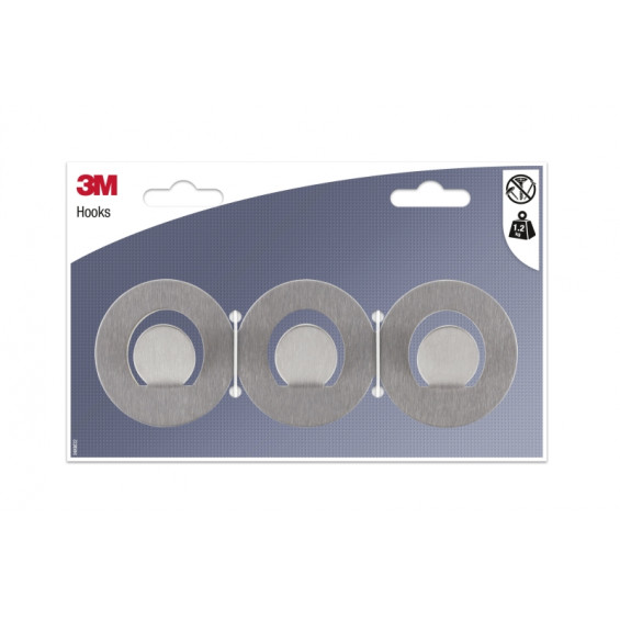3M Ganchos Adhesivos en Barra Metalica - Barra con 3 Ganchos - Soporta hasta 1.2kg - Color Gris/Titanio