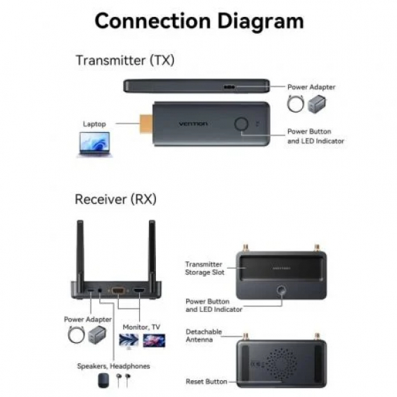 Adaptador de vídeo inalámbrico HDMI a HDMI Vention ADTH0 – Nivel Empresarial 50m