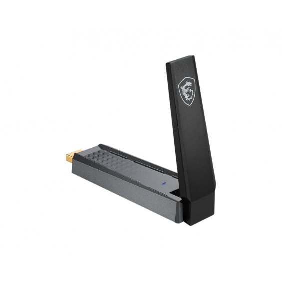 Tipo de producto: Adaptador Wi-Fi USB de alta velocidad Interfaz: USB 2.0 Velocidad: Hasta 1800 Mbps (574 Mbps en 2.4 GHz + 1201 Mbps en 5 GHz) Tecnología: Wi-Fi 6 (802.11ax) con beamforming y MSI FIRST Seguridad: Compatible con WPA, WPA2 y WPA3