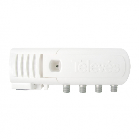 Amplificador de vivienda de 3 salidas (2 TV), para ampliar la red doméstica de televisión terrestre. La salida TV ofrece una ganancia más baja para ser conectada directamente al televisor (sin instalar una toma). Incorpora filtrado LTE700/5G.