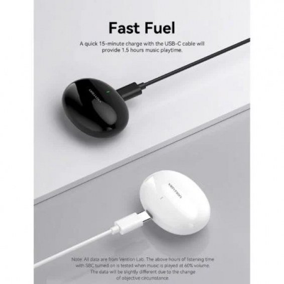Una carga rápida de 15 minutos con el cable USB-C proporciona una hora y media de escucha de música