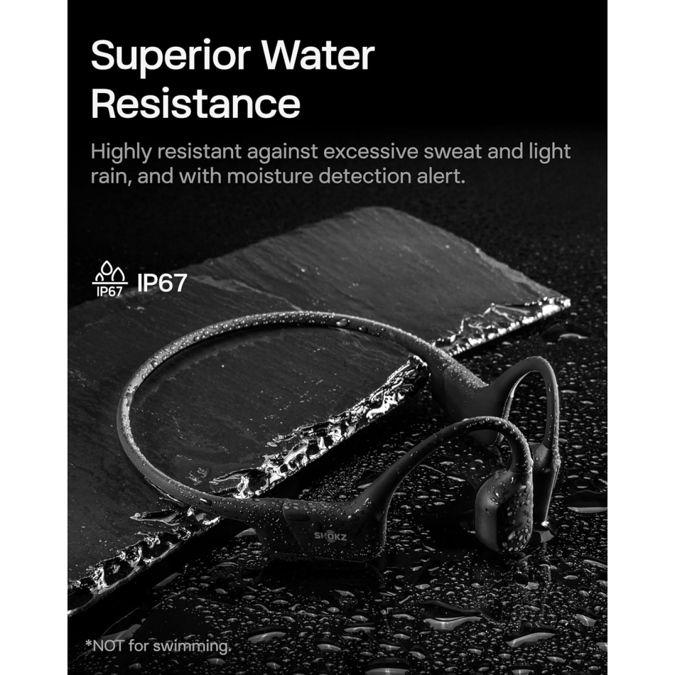 Auriculares de Conducción ósea Inalámbricos SHOKZ OpenRun en color negro son perfectos para realizar actividades físicas con gran comodidad y seguridad. Con una carga rápida de 10 minutos te ofrece 1,5 horas de tiempo de uso. Con estos cascos tendrás una audición Open-Ear, para estar en alerta y seguro, podrás escuchar música y el tráfico al mismo tiempo. Los Shokz OpenRun han sido fabricados con una estructura de titanio envolvente, con el que obtendrás un gran ajuste. con resistencia IP67 de protección contra el agua permite que tus auriculares estén protegidos de salpicaduras, sudor e incluso tormentas, PremiumPitch 2.0+ que ofrece un sonido de estéreo dinámico, micrófono integrado, conectividad Bluetooth 5.1, batería con hasta 8h de autonomía mediante carga rápida USB-C.