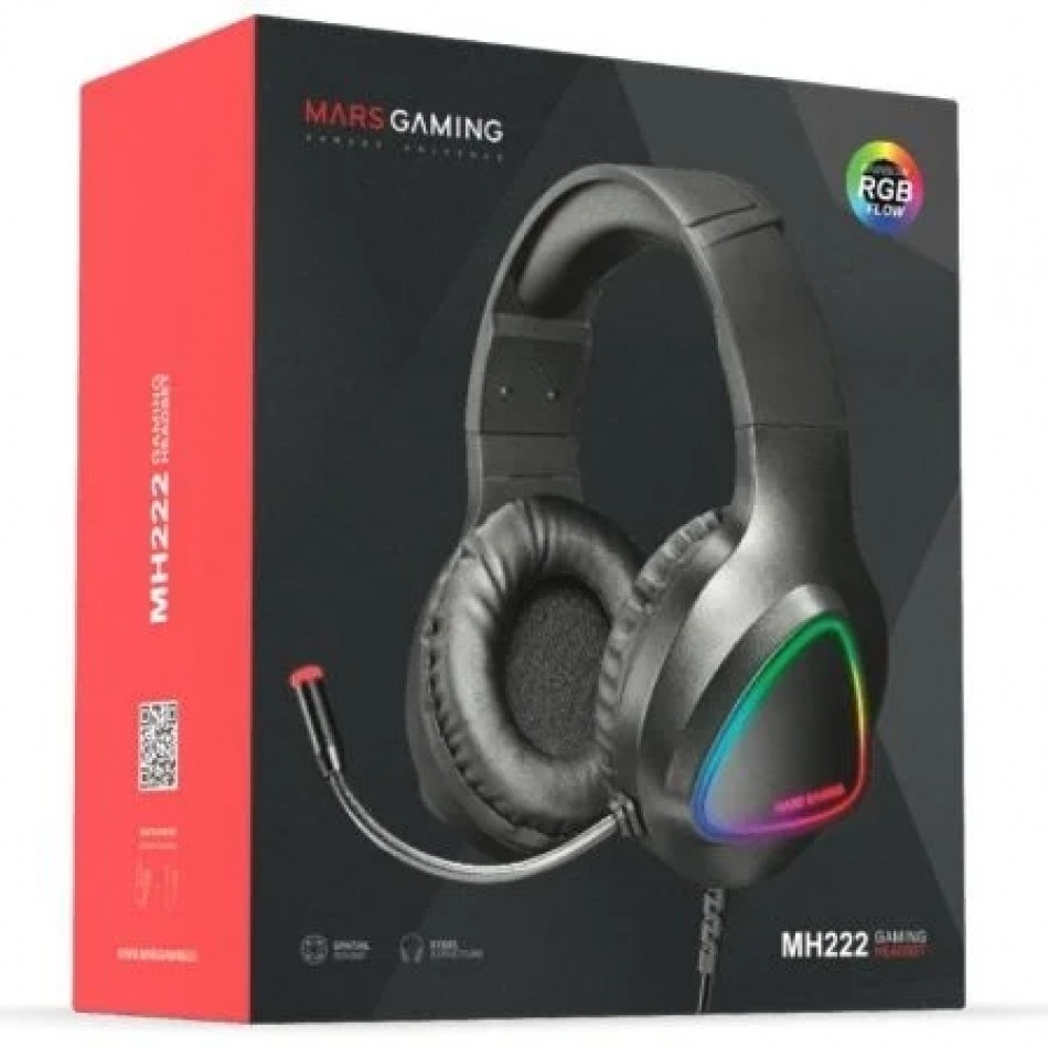 Auriculares gaming con micrófono mars gaming mh222/ jack 3.5/ negros