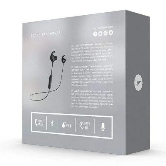 Auriculares inalámbricos deportivos spc stork/ con micrófono/ bluetooth/ jack 3.5/ negros