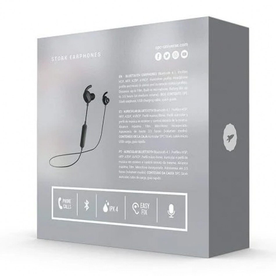Auriculares Inalámbricos Deportivos SPC Stork/ con Micrófono/ Bluetooth/ Jack 3.5/ Negros