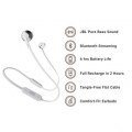 " Durante más de 70 años, JBL ha diseñado el sonido preciso e impresionante que se encuentra en grandes lugares de todo el mundo. Estos auriculares reproducen el mismo ADN JBL, perforando graves profundos y potentes.Disfruta de tu música y llama durante 6 horas. Obtén una recarga completa en 2 horas.Controla fácilmente tu sonido y gestiona llamadas desde tus auriculares con el práctico mando a distancia de tres botones con micrófono.Un cable FL duradero que no se enreda en nudos.Los auriculares suaves y ergonómicos te permiten disfrutar de tu música con total comodidad.Bluetooth version: 4.1Longitud del cable del auricular (cm) 78.0Especificaciones de audioTamaño del driver (mm) 12.5Número de conductores por oído 1.0Sensibilidad del controlador a 1kHz / 1mW (dB) 100dB SPL / 1mwImpedancia (ohmios) 32.0Especificaciones de control y conexiónTransmisor Bluetooth power 0 ~ 4 dbmFrecuencia de Bluetooth 2.402GHz-2.48GHzModulación transmitida por Bluetooth GFSK, DQPSK, 8-DPSKRango de respuesta de frecuencia dinámica (Hz) 20 Hz - 20 kHzBateríaTipo de batería: Batería de litio y polímero (3.7 V, 120 mAh)Tiempo de carga (horas desde vacío) 2.0Velocidad de carga tiempo (horas) 2.0Tiempo de conversación (horas) 6.0Tiempo de reproducción (horas) 6.0CaracteristicasJBL Pure Bass SoundCable planoAcabados de aluminioBotones para la orejaBatería recargableIn-earMicrófonoLlamadas manos libres "