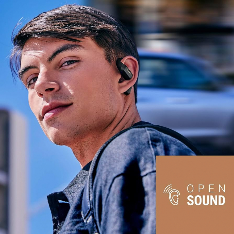 Tipo de auriculares: Deportivo, diseño abierto e inalámbrico Conectividad: Bluetooth 5.4, alcance máximo 20 m Respuesta en frecuencia: 20 Hz - 20 kHz Sensibilidad: -42 dB ± 3 dB (@1 kHz) Impedancia: 16 Ω Autonomía: Hasta 25 horas con estuche de carga USB-C Micrófono integrado y control de volumen en auriculares Dimensiones: 10 x 5 x 10 cm - Peso: 0,65 g (producto) / 0,14 kg (con caja) Color: Negro