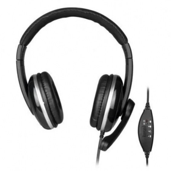 AURICULAR DE DIADEMA CON CONEXION USB PARA PC CON MICRÓFONO AJUSTABLE, REGULADOR VOLUMEN.