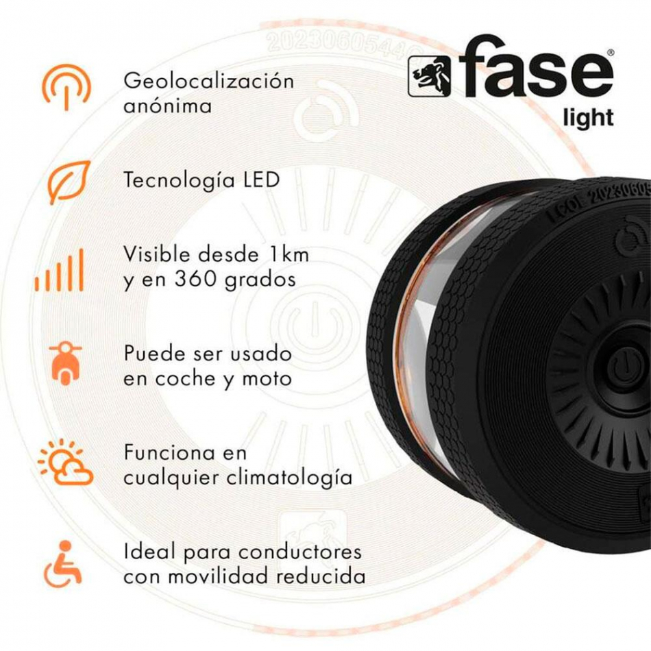 La Baliza homologada V16 geolocalizable FASE LIGHT es un dispositivo de señalización de emergencias en carretera diseñado para mejorar la seguridad vial, aportando geolocalización exacta y anónima a la DGT 3.0 en caso de peligro o incidente. Es la señal V16 homologada que será obligatoria a partir del 01/01/2026.