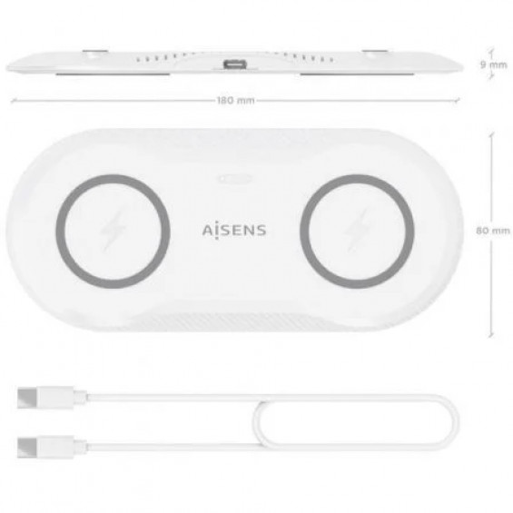 AISENS® – Cargador inalámbrico USB-C de 15W 2 en 1 para Móvil Auriculares, Blanco