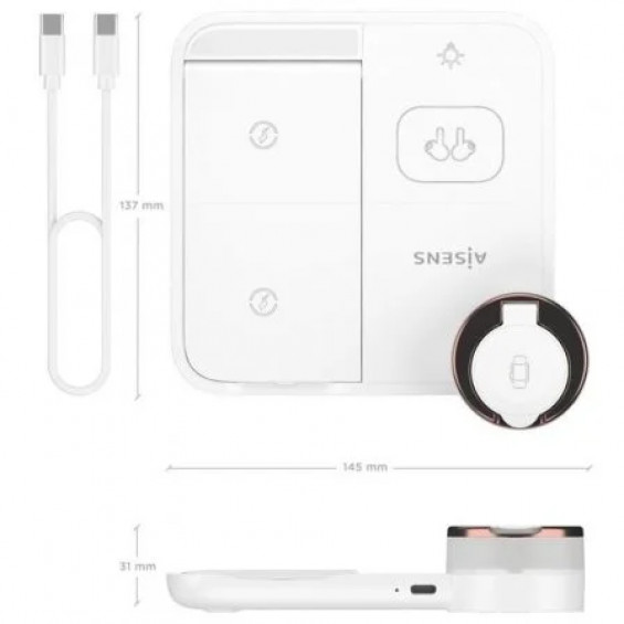 AISENS® – Cargador inalámbrico USB-C 4 en 1 de 15W para Móvil, Apple Watch, Auriculares con Estuche de Carga, Blanco