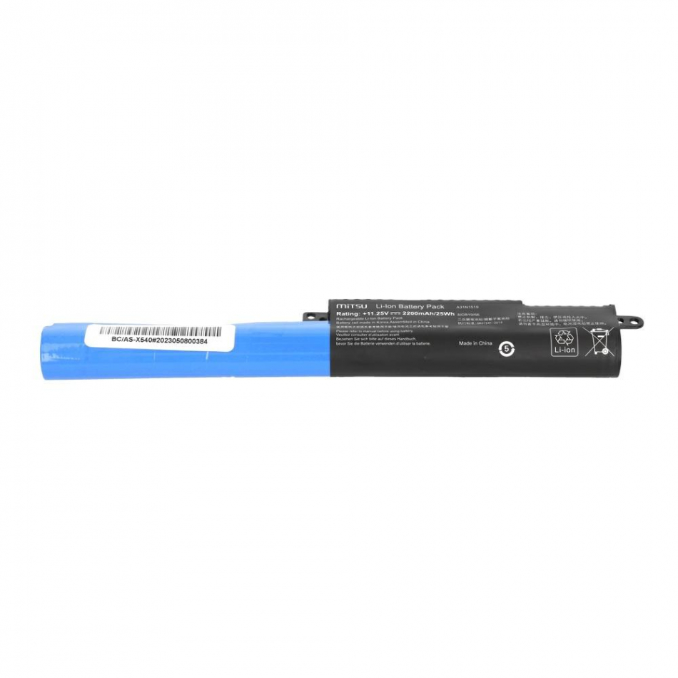 IMPORTANTE: COMPRUEBE QUE EL VOLTAJE DE SU BATERÍA ES EL INDICADO. (10,8 = 11,1 Y 14.4=14,8) Especificaciones: Voltaje: 11.25V Capacidad: 2200 mAh (24Wh) Celdas: 3 Marca: Mitsu Fabricante de las celdas: Tianneng Código original Mitsu: BC/AS-X540 Seguridad: sobretensión, sobrecalentamiento, cortocircuito, sobrecorriente, sobredescarga y sobrecarga Certificados: CE, RoHS Garantía: 12 meses (capacidad de la batería), 24 meses (Electrónica) Células de marca duraderas y espaciosas. La batería está equipada con celdas de polímero de litio de clase A de la conocida marca Tianneng. Esto nos da la certeza de la capacidad que declaramos de 2200 mAh (24 Wh). Utilizamos componentes de alta calidad para nuestras baterías Mitsu, lo que las hace muy eficientes y duraderas. Su portátil funcionará de manera segura y confiable con esta batería. Esto se debe a una caída mucho más lenta de la capacidad nominal en comparación con otras alternativas más económicas. Seguridad y sin efecto memoria La batería Mitsu está equipada con un sistema de seguridad inteligente que la protege contra sobretensiones, sobrecalentamientos, así como cortocircuitos y sobrecargas de corriente. También puedes cargar esta batería de forma segura cuando quieras y durante el tiempo que quieras, ya que no tiene efecto memoria. Rendimiento de la batería y vida útil La batería Mitsu es muy poco propensa a autodescargarse. Esto significa que podemos ofrecerle la garantía de que más del 70% de la capacidad de la batería se mantendrá después de un año de uso. A la hora de cuidar la batería, ésta debe durar un periodo de unos 3 años. Protección del medio ambiente La producción de nuestras baterías se realiza en cada etapa cuidando el medio ambiente, lo que está garantizado por los certificados CE, RoHS e ISO9001. Modelos compatibles: ASUS X540 ASUS X540S ASUS X540YA ASUS X540LA ASUS X540SA X540L X540LA X540LJ X540SC Asus F540 Series Asus R540 Series Partnumber compatibles:   3ICR19/66 A31N1519 A31N1519-2