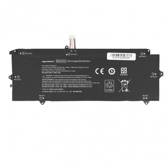 IMPORTANTE: COMPRUEBE QUE EL VOLTAJE DE SU BATERÍA ES EL INDICADO. (10,8 = 11,1 Y 14.4=14,8)Especificaciones:Voltaje: 7.6VCapacidad: 5000 mAh (38Wh)Celdas: 4Marca: MovanoFabricante de las celdas: ZhuonengCódigo original Movano: BT/HP-1012Seguridad: sobretensión, sobrecalentamiento, cortocircuito, sobrecorriente, sobredescarga y sobrecargaCertificados: CE, RoHSGarantía: 12 meses (capacidad de la batería), 24 meses (Electrónica)Células de marca duraderas y espaciosas.La batería está equipada con celdas de polímero de litio de clase A de la conocida marca Zhuoneng. Esto nos da la certeza de la capacidad que declaramos de 5000 mAh (38 Wh). Utilizamos componentes de alta calidad para nuestras baterías Movano, lo que las hace muy eficientes y duraderas. Su portátil funcionará de manera segura y confiable con esta batería. Esto se debe a una caída mucho más lenta de la capacidad nominal en comparación con otras alternativas más económicas.Seguridad y sin efecto memoriaLa batería Movano está equipada con un sistema de seguridad inteligente que la protege contra sobretensiones, sobrecalentamientos, así como cortocircuitos y sobrecargas de corriente. También puedes cargar esta batería de forma segura cuando quieras y durante el tiempo que quieras, ya que no tiene efecto memoria.Rendimiento de la batería y vida útilLa batería Movano es muy poco propensa a autodescargarse. Esto significa que podemos ofrecerle la garantía de que más del 70% de la capacidad de la batería se mantendrá después de un año de uso. A la hora de cuidar la batería, ésta debe durar un periodo de unos 3 años.Protección del medio ambienteLa producción de nuestras baterías se realiza en cada etapa cuidando el medio ambiente, lo que está garantizado por los certificados CE, RoHS e ISO9001.Modelos compatibles: HP Elite X2 1012 G1 SeriesPart Number Compatibles:�-2B1812060-2C1812148-855812205-001HSTNN-DB7FHSTNN-I72CMC04XLMG04MG04040XLMG04040XL-PLMG04XL