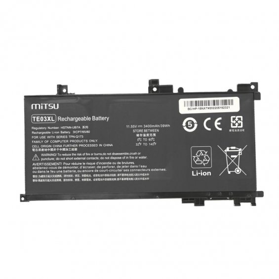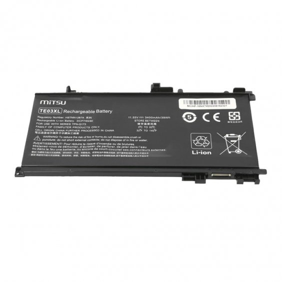 IMPORTANTE: COMPRUEBE QUE EL VOLTAJE DE SU BATERÍA ES EL INDICADO. (10,8 = 11,1 Y 14.4=14,8) Especificaciones: Voltaje: 11.55V Capacidad: 3400 mAh (39Wh) Celdas: 3 Marca: Mitsu Fabricante de las celdas: Tianneng Código original Mitsu: BC/HP-15NXT Seguridad: sobretensión, sobrecalentamiento, cortocircuito, sobrecorriente, sobredescarga y sobrecarga Certificados: CE, RoHS Garantía: 12 meses (capacidad de la batería), 24 meses (Electrónica) Células de marca duraderas y espaciosas. La batería está equipada con celdas de polímero de litio de clase A de la conocida marca Tianneng. Esto nos da la certeza de la capacidad que declaramos de 3400 mAh (39 Wh). Utilizamos componentes de alta calidad para nuestras baterías Mitsu, lo que las hace muy eficientes y duraderas. Su portátil funcionará de manera segura y confiable con esta batería. Esto se debe a una caída mucho más lenta de la capacidad nominal en comparación con otras alternativas más económicas. Seguridad y sin efecto memoria La batería Mitsu está equipada con un sistema de seguridad inteligente que la protege contra sobretensiones, sobrecalentamientos, así como cortocircuitos y sobrecargas de corriente. También puedes cargar esta batería de forma segura cuando quieras y durante el tiempo que quieras, ya que no tiene efecto memoria. Rendimiento de la batería y vida útil La batería Mitsu es muy poco propensa a autodescargarse. Esto significa que podemos ofrecerle la garantía de que más del 70% de la capacidad de la batería se mantendrá después de un año de uso. A la hora de cuidar la batería, ésta debe durar un periodo de unos 3 años. Protección del medio ambiente La producción de nuestras baterías se realiza en cada etapa cuidando el medio ambiente, lo que está garantizado por los certificados CE, RoHS e ISO9001. Modelos compatibles: HP Pavilion 15-BC Series HP Pavilion 15T-BC Series HP Omen 15-AX Series HP Omen 15T-AX Series Part number compatibles: 849570-541 849570-542 849570-543 849910-850 HSTNN-UB7A TE03061XL TE03XL TPN-Q173 Nota: Esta batería puede ser compatible con otros modelos no indicados en nuestra lista
