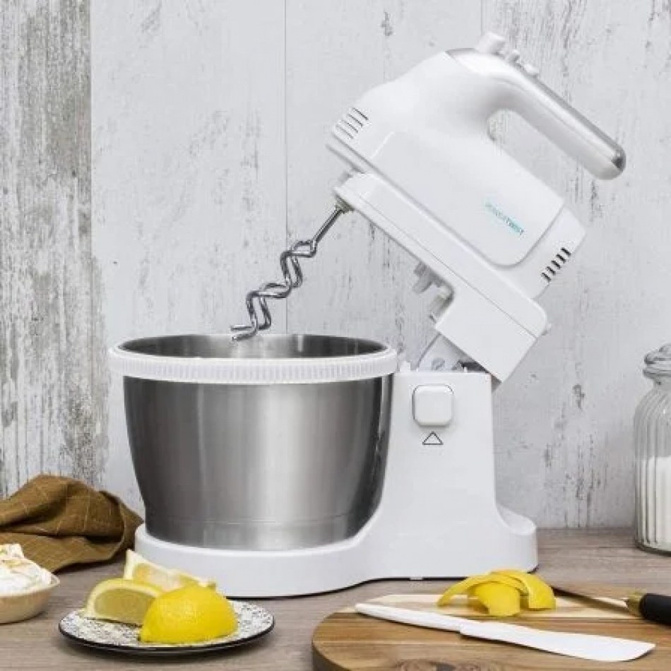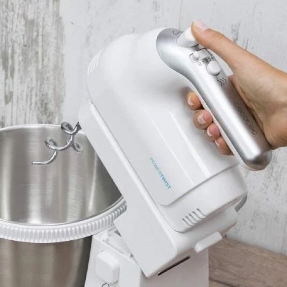 PowerTwist 500 Steel Cecotec Batidora de varillas con bol PowerTwist 500 Steel con un motor de 500 W, bol autogiratorio de acero inoxidable de 3,5 L de capacidad, 5 niveles de velocidad más función Turbo y tres accesorios: dos varillas batidoras, dos garfios amasadores y una varilla de globo.