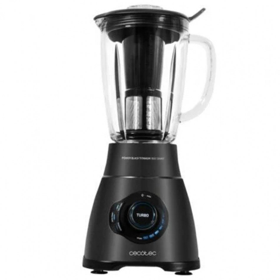 • Cecotec Batidora de vaso americano digital Power Black Titanium 1800 Smart de 1800 W de Potencia, con Cuchilla de 6 Hojas de Titanio negro, Filtro para licuados, 3 Programas Automáticos y Jarra Termorresistente.