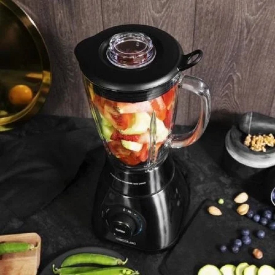 • Cuchilla de 6 hojas con recubrimiento de titanio negro que mantiene el acero afilado durante más tiempo. Programa Smoothie que pasa por distintas velocidades automáticamente hasta conseguir el batido perfecto.