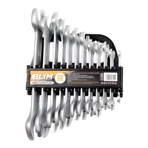 Blim Juego de 12 Llaves de Dos Bocas Metrica - Cabezales Ultrafinos - Cabezal en Angulo de 15° - Aleacion de Acero de Altas Prestaciones - Mango en Forma de U - Marcas de Tamaño Unidireccionales - Aca