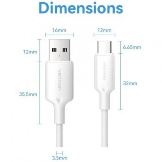 Cable USB 2.0 Tipo-C Vention CTQWH/ USB Tipo-C Macho - USB Macho/ Hasta 60W/ 480Mbps/ 2m/ Blanco