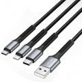 Cable USB Tipo-C Lightning Vention H18BAV/ USB Tipo-C Macho/ Lightning Macho - MicroUSB Macho - USB Macho/ 1.2m/ Negro