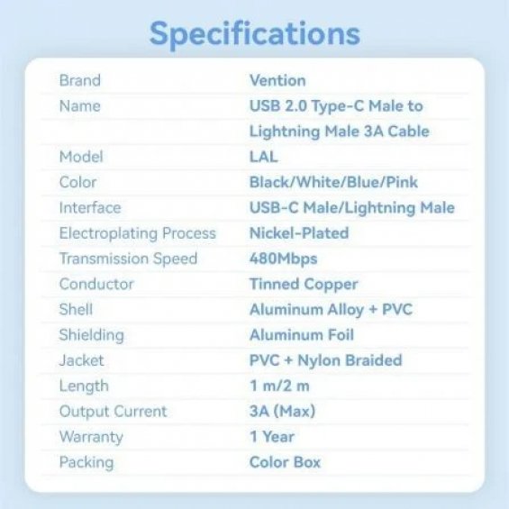 Fabricante:   VENTION    P/N:  LALBF    Ean:  6922794783560    Código:  220823