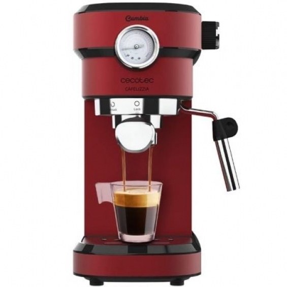 Cecotec cafetera express Cafelizzia 790 Shiny Pro para espressos y cappuccinos, dispone de sistema de rápido calentamiento por thermoblock, 20 bares, manómetro PressurePro, ModoAuto para 1 y 2 cafés, vaporizador orientable y conducto de agua para infusiones.