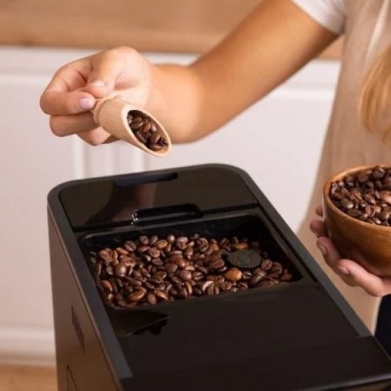 La cafetera Power Matic-ccino Vaporissima incorpora un depósito de 150 gr de café en grano hermético que garantiza que se conserve el aroma original. Dispone de un molinillo cónico integrado que ofrece grandes posibilidades con 5 niveles de molienda ajustables.
