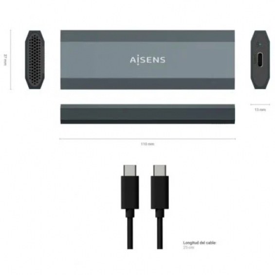 Caja Externa para Disco SSD M.2 SATA/NVMe Aisens ASM2-018GR/ USB 3.1/ Sin tornillos