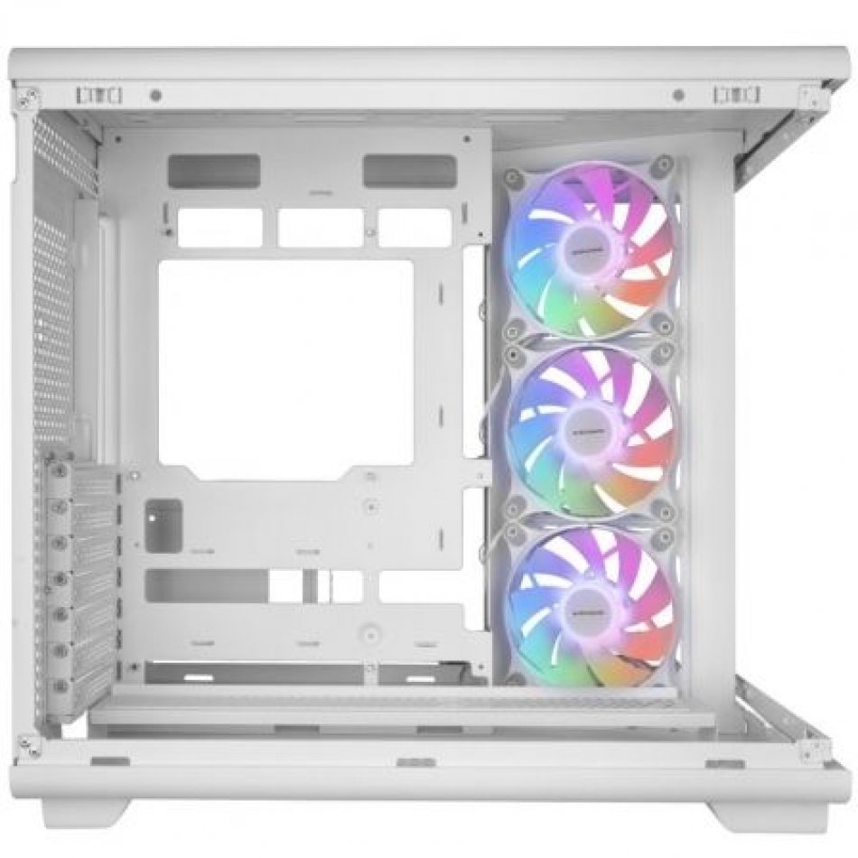 La caja MC-REV está diseñada para llevar el rendimiento y la estética gaming al máximo nivel. Su revolucionario sistema de flujo de aire invertido, con tres ventiladores ARGB inclinados a 25° integrados, dirige el aire directamente a la GPU y la placa base, asegurando una disipación térmica óptima en cualquier configuración. Su estructura de doble cámara mejora la gestión del flujo de aire y el cableado, mientras que su compatibilidad con placas base de conector inverso permite un interior más limpio y eficiente. Además, incorpora un sistema de montaje vertical para GPU, realzando la presentación del hardware. Con un diseño sin tornillos y paneles de cristal templado a presión, la MC-REV garantiza un montaje rápido, sin esfuerzo y con una visión panorámica espectacular del setup.