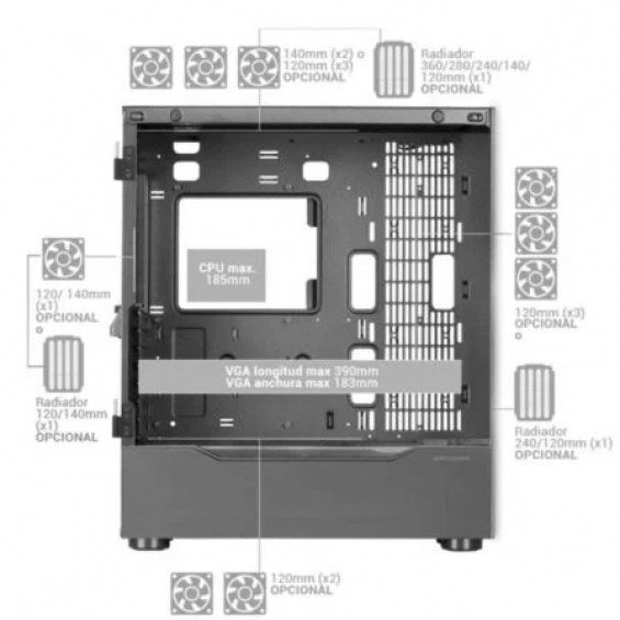 El diseño CUSTOM de la torre te ofrece una libertad total para seleccionar y montar los componentes que elijas, adaptándose a tus necesidades específicas sin extras superfluos. Con la MC-ULT, tu imaginación define los límites de la personalización y el rendimiento.
