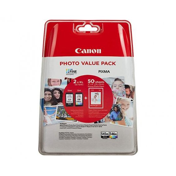 Canon PG-545XL/CL-546XL Pack de 2 Cartuchos de Tinta Originales + 50 Hojas de Papel Fotografico - 8286B011