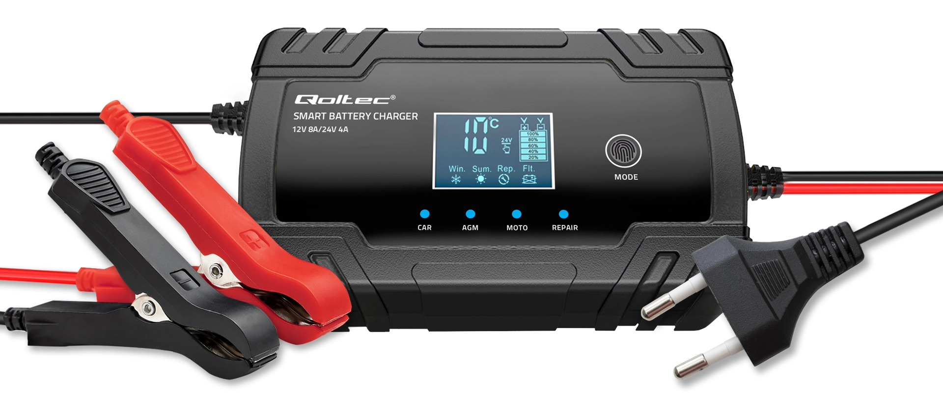El Cargador para Baterías AGM GEL Plomo-ácido 8A de la marca Qoltec es un dispositivo de alta eficiencia diseñado para la gestión energética de acumuladores de 12V y 24V . Este equipo destaca por su versatilidad, permitiendo comprar cargador para baterías AGM con la seguridad de obtener una carga lenta y controlada que preserva la integridad química de la batería. Su sistema de enfriamiento activo mediante ventilador garantiza un funcionamiento estable, incluso durante procesos prolongados, manteniendo un rendimiento del 85% .