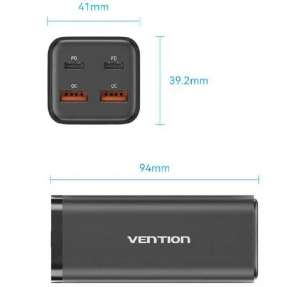 Cargador de Pared Vention FBSBG-EU/ 2xUSB Tipo-C/ 2xUSB/ 100W