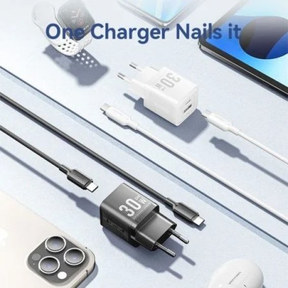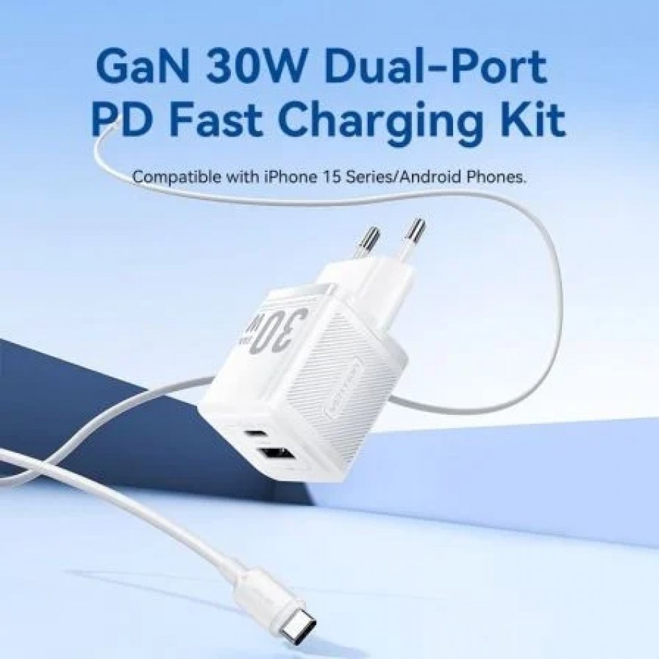 Cargador GaN de 2 puertos USB (C + A) (30 W/30 W) con cable USB-C a USB-C