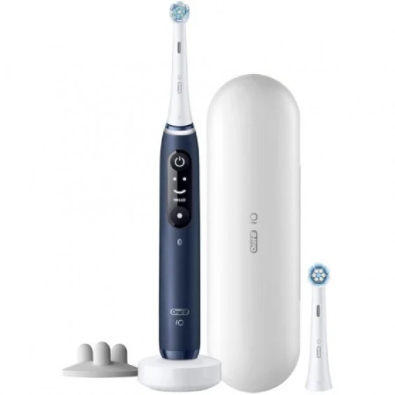 El cepillo de dientes eléctrico Oral-B Braun iO 7S es un dispositivo recargable que incluye dos cabezales. Ofrece cinco modos de cepillado: limpieza diaria, sensible, cuidado de las encías, intenso y blanqueamiento. Su tecnología de cepillado incluye un cabezal que oscila, rota y microvibra. Dispone de un sensor de presión que se ilumina en diferentes colores para indicar la presión adecuada durante el cepillado. La pantalla interactiva proporciona información sobre los modos de cepillado y un recordatorio para sustituir el cabezal. El tiempo de recarga es de tres horas y se incluye un cargador, una funda de viaje y un portarrecambios. '