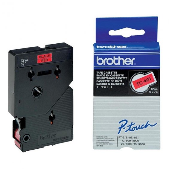 Cinta Brother TC401 Laminada Original 12mm x 7m - Negro sobre Rojo