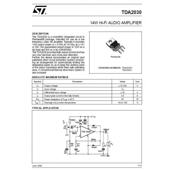 TDA2030A AMPLIFICADOR AUDIO 18W