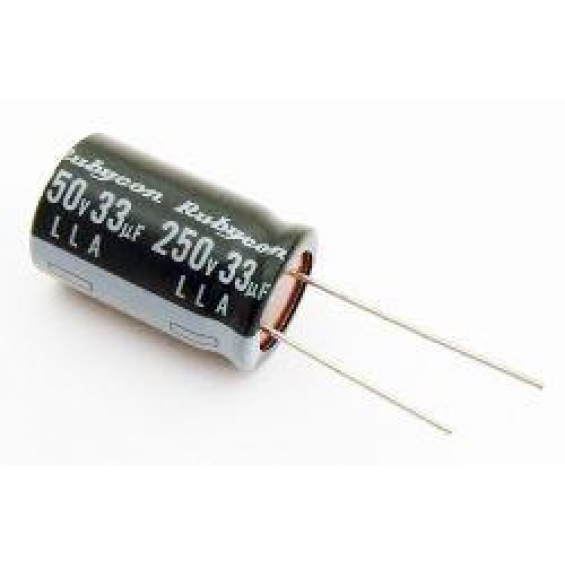 33uF 250Vdc Condensador Electrolitico 105ºC Radial
