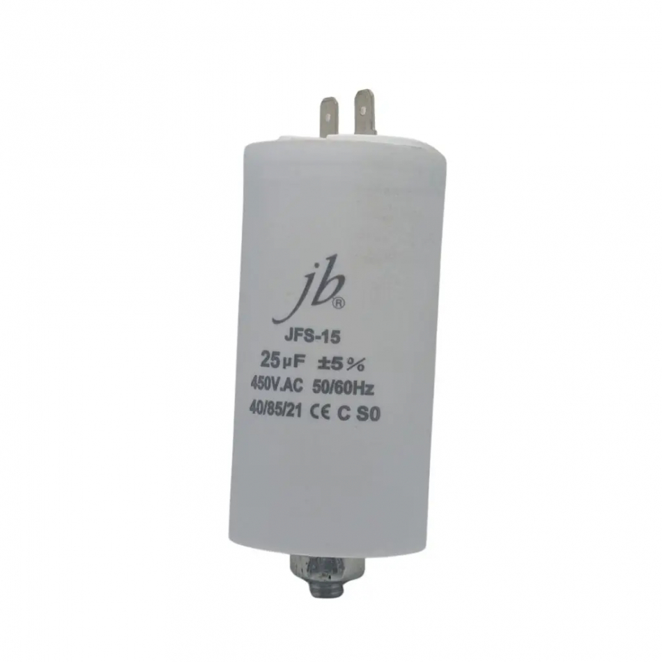 Condensador MOTOR 25uF 450Vac FASTON + M8 Medidas Ø40x75mm JB