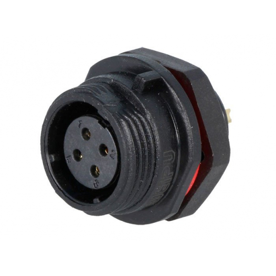 Conector Redondo Panel IP68 – Hembra | 4 Pines | Rosca Exterior