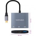 Conversor Nanocable 10.16.4306 USB Tipo-C/ HDMI 4K Hembra - USB Hembra - USB Tipo-C PD/ 15cm/ Gris