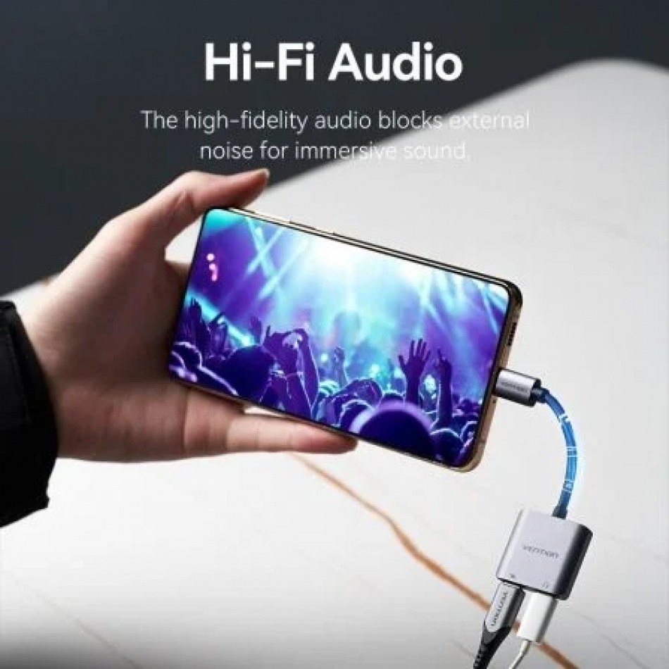 Conversor USB Tipo-C Vention BGZHA/ USB Tipo-C Macho - 2x USB Tipo-C Hembra (Audio y Carga)