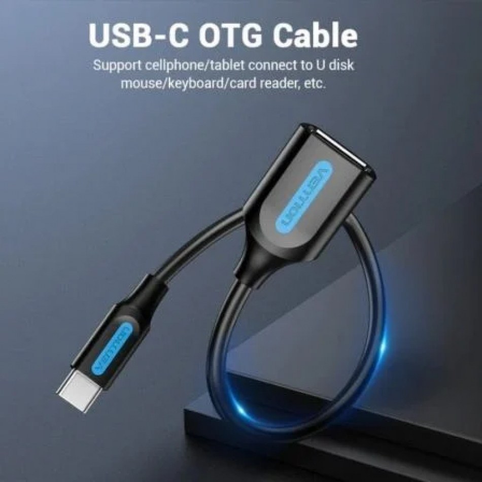 Conversor Vention CCSBB/ USB Tipo-C Macho - USB Hembra/ 15cm/ Negro