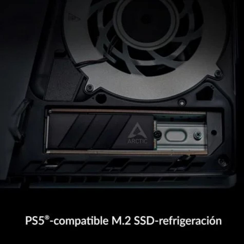 Es posible ampliar la capacidad de almacenamiento de la PlayStation 5 instalando un SSD M.2 rápido. Sony indica expresamente en las instrucciones que este medio de almacenamiento M.2 requiere un disipador de calor. El ARCTIC M2 Pro cumple con los requisitos especificados y, por lo tanto, es compatible con la PS5 y la PS5 Slim.